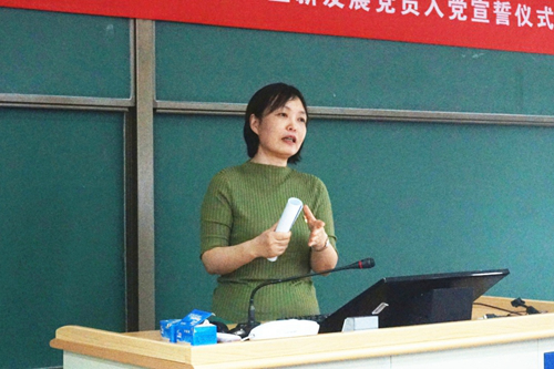 优秀共产党员代表李琼同志讲授有关马克思主义的专题党课。她结合专业知识和具体实际讲述中国特色社会主义的发展路径,谈到三个方面内容,第一是马克思主义的科学性,第二是马克思主义的实践性,第三是马克思主义的开放性和时代性,指出马克思主义的精髓就在于它能够与时俱进,不断发展。