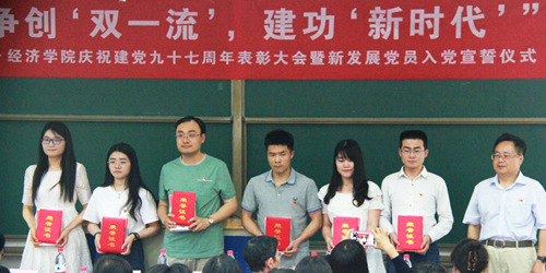 在建党九十七周年之际,为激励学院各基层党支部更好发挥战斗堡垒作用,弘扬党员的先锋模范作用,进一步加强学习宣传贯彻习近平新时代中国特色社会主义思想和党的十九大精神,继续推进“两学一做”学习教育常态化制度化,经济学院党委总结一年以来的学院党建工作成果,表彰一批先进的基层党组织、优秀共产党员、党支部书记和学生党建骨干。