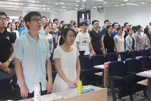 2018年6月6日下午,学院党委 “争创‘双一流’,建功‘新时代’”庆祝建党九十七周年表彰大会暨新发展党员入党宣誓仪式在明德法学楼0201教室成功举办。