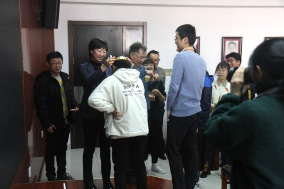 11月20日中午,探花视频 党委书记宋东霞、副院长张可云、党委副书记林晨来到明德主楼930会议室,聆听同学们齐声歌唱歌曲《国家》,并对学院参加2019年度“一二·九”合唱音乐节训练的同学进行慰问。