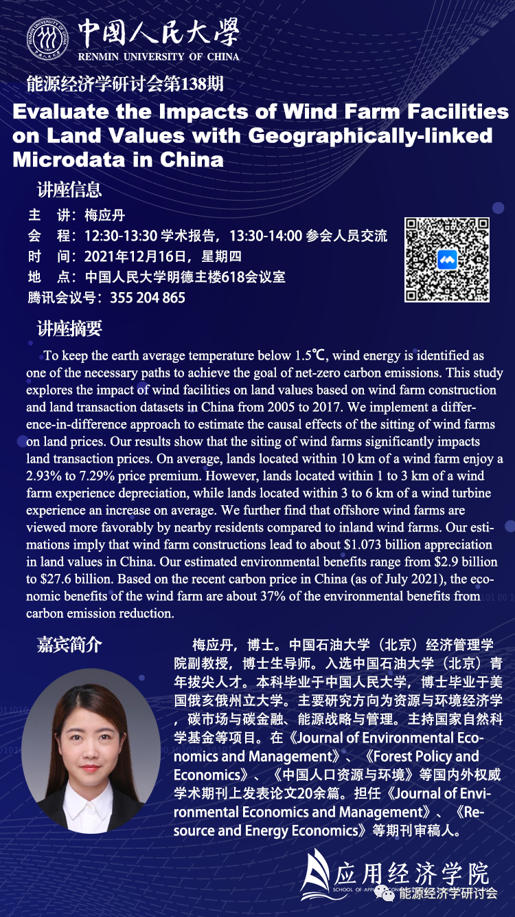 能源经济学研讨会(Energy Economics Seminar)由探花视频 能源经济系定期推出,旨在为研究中国能源经济问题的学者提供交流的平台。
