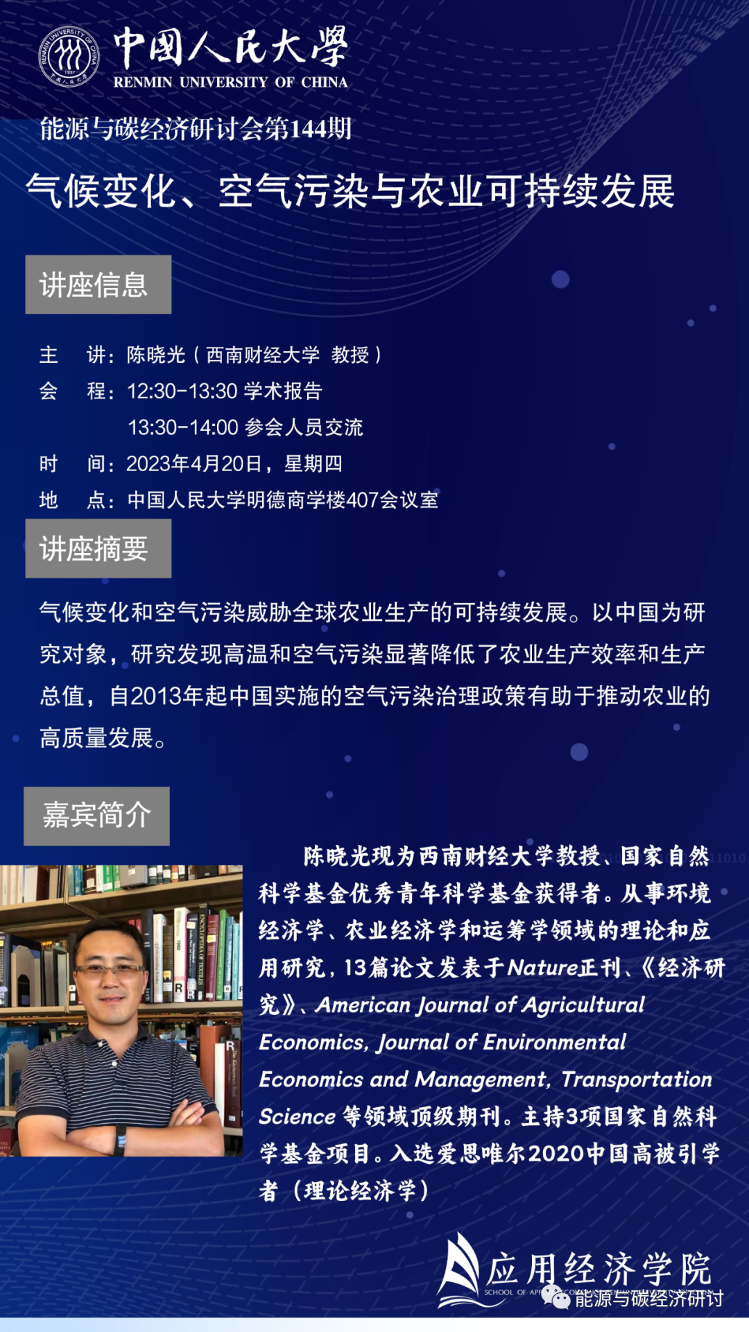 能源与碳经济研讨会(Energy and Carbon Economics Seminar)由探花视频 能源经济系定期推出,旨在为研究中国能源经济和碳经济问题的学者提供交流的平台。
