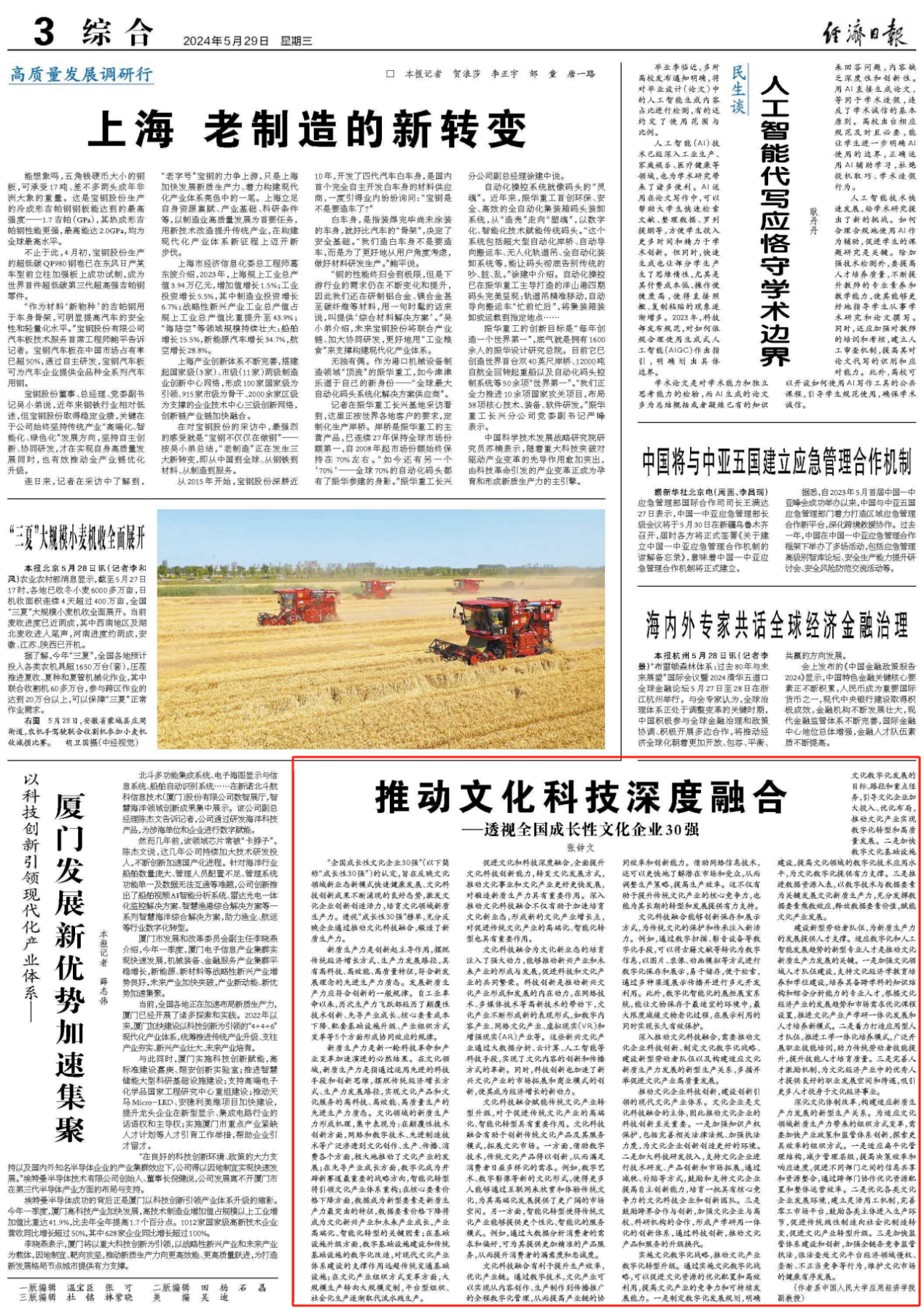 “全国成长性文化企业30强”(以下简称“成长性30强”)的认定,旨在反映文化领域新业态新模式快速健康发展、文化科技创新成果不断涌现的良好态势,激发文化企业创新创造活力,培育文化领域新质生产力。透视“成长性30强”榜单,充分反映企业通过推动文化科技融合,锻造了新质生产力。