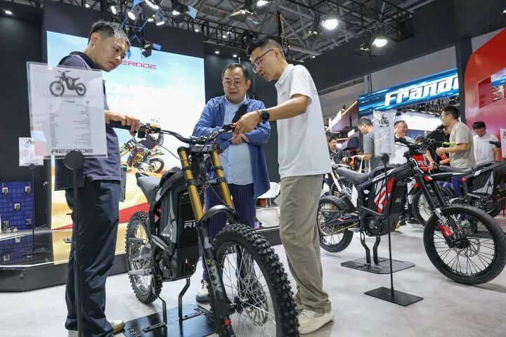 ▲第二十三届中国国际摩托车博览会于2025年9月19日至22日在重庆举行。观众在现场参观国产新能源摩托车。新华社记者陈诚摄