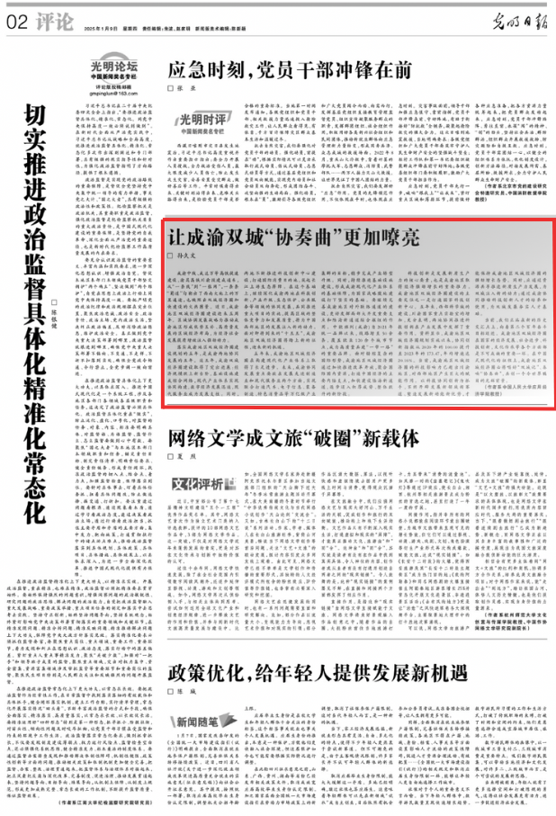 当前,我们正站在新的历史交汇点上,向着第二个百年奋斗目标迈进。成渝地区双城经济圈在国家的经济发展、社会进步、科技创新,文化传承等各个方面都是不可或缺的重要一环。在中国式现代化的征程上,成渝地区双城经济圈必将唱好“双城记”、奏响“协奏曲”,共创一个令世界瞩目的光辉前景。