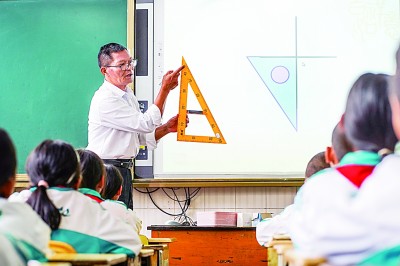 坚守三尺讲台三十九载的山村教师杨红军在为学生授课。新华社发