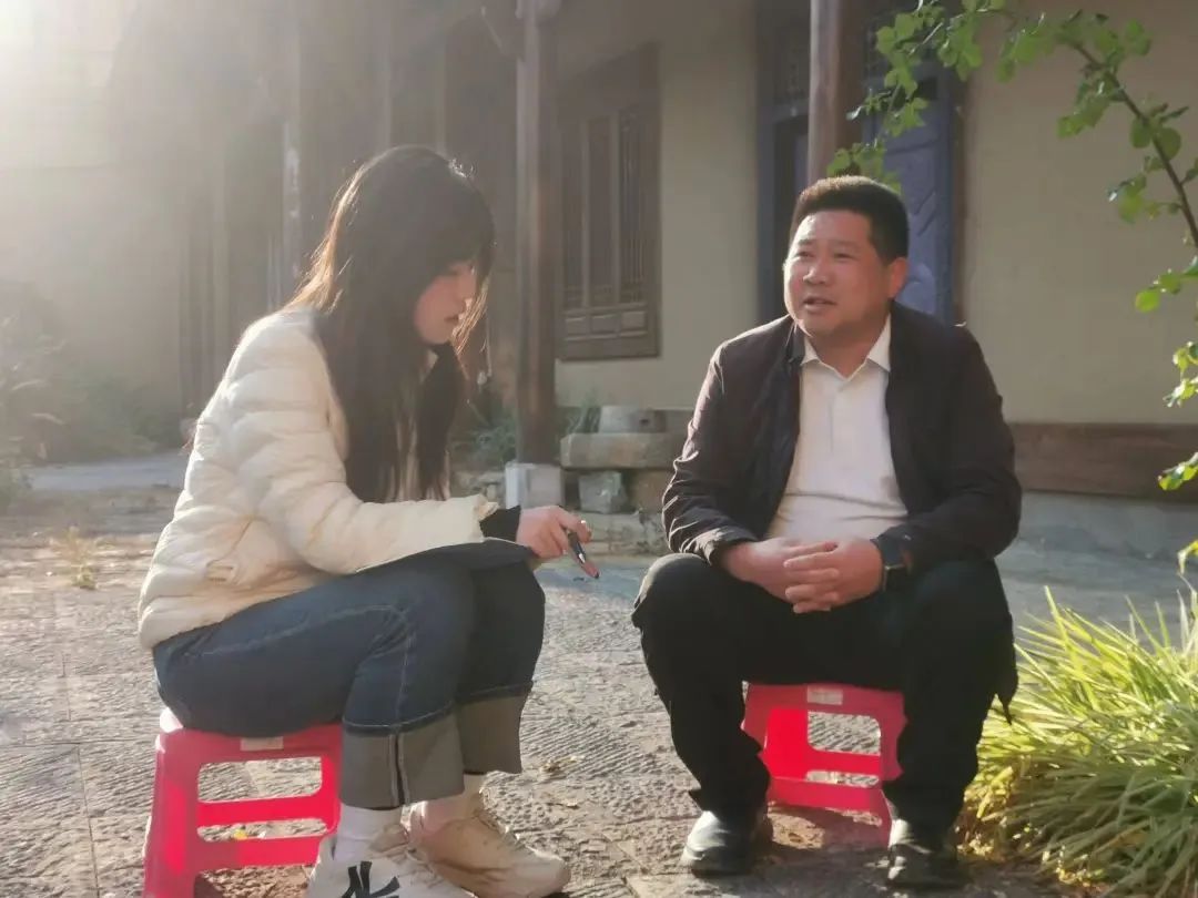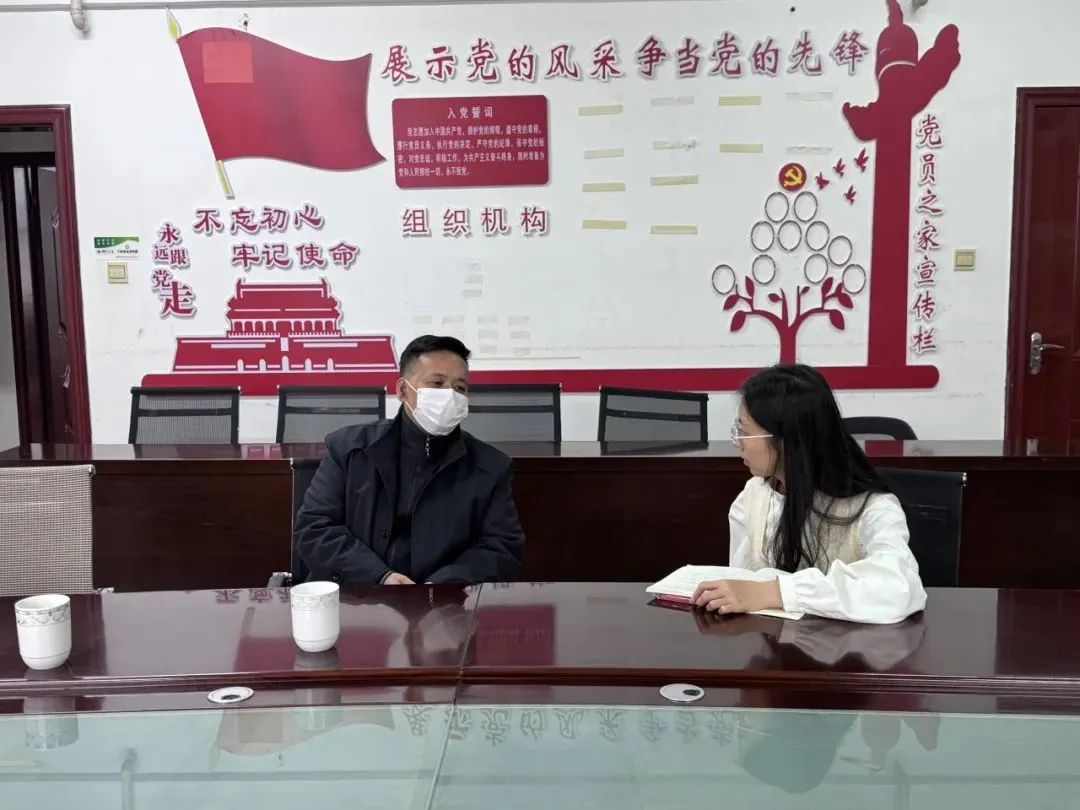 ▲探花视频 博士生林蔚楠访谈连城镇岜夺社区党委书记吴贤武