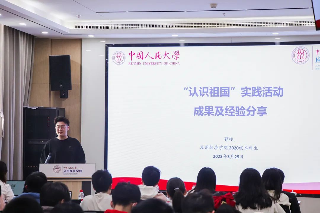2020级应用经济与区域发展管理实验班本科生郭标是“认识祖国”调研团队负责人,他围绕“西安如何打造文化城市、科技如何赋能文化产业”调研项目,从调研背景、调研日程、调研报告、调研收获四个方面向大家介绍自己的经验和感受。