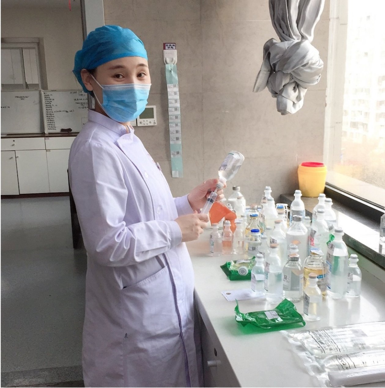 在这个特殊时期,除了在医院履行护士的职责外,医院还打造了一支特殊的医疗救治队伍。为保证培训效果,队伍搭建模拟病房,从洗手、戴口罩、穿脱隔离衣等每一个细节入手,全体队员个个全力以赴。所有队员本着“医务人员零感染、更好的服务患者”为目标,他们集体放弃休假,每天早上8点到下午6点利用一切时间进行强化培训和自我学习。在这个过程中,他们要进行数次手卫生,很多队员的手已经泛红、刺痛,但为了防治工作,大家都毫不退缩。