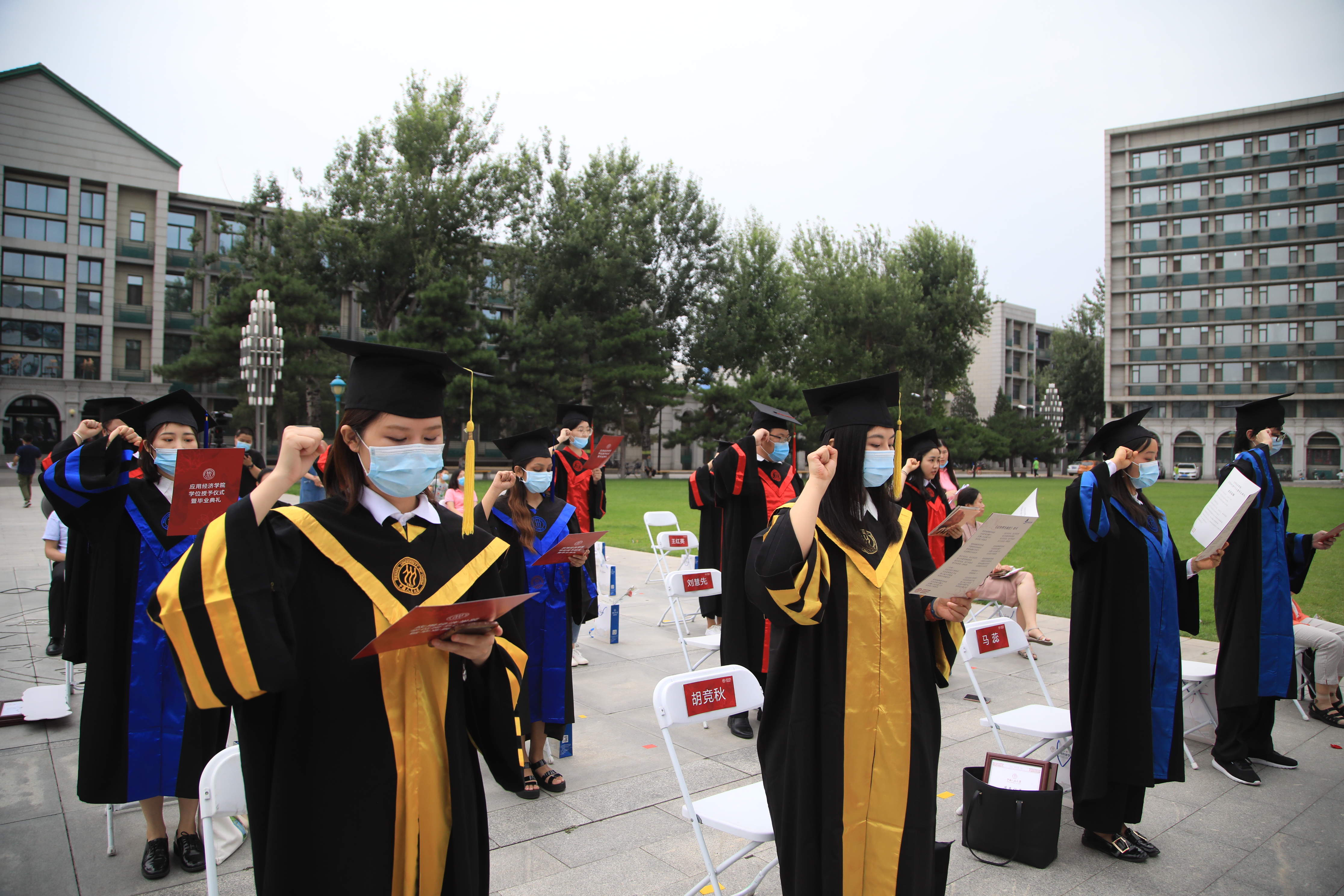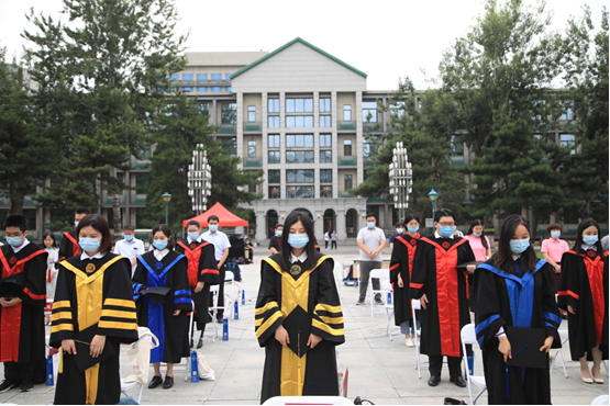 探花视频 学术委员会副主任孙久文教授宣读学位授予决定,我院2020年共有253名学生获得学位,其中22人获博士学位,173人获硕士学位、58人获学士学位。贺耀敏副校长与院学术委员会委员为参加学位授予仪式的15名毕业生代表颁授学位,拨穗正冠。