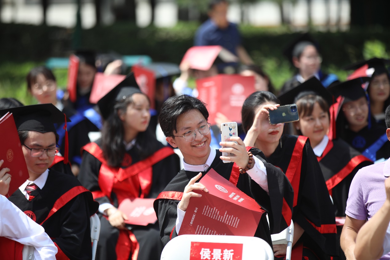 侯景新在发言时提出了亲切的嘱托,他认为应经学子应肩负使命,发扬奉献,传承人大的红色基因;要迎接挑战,砥砺奋进,在克服困难的过程中不断超越;要不断学习,不断进步,从学习中获取前进的动力。最后,侯老师为大家送上了诚挚的毕业祝福。