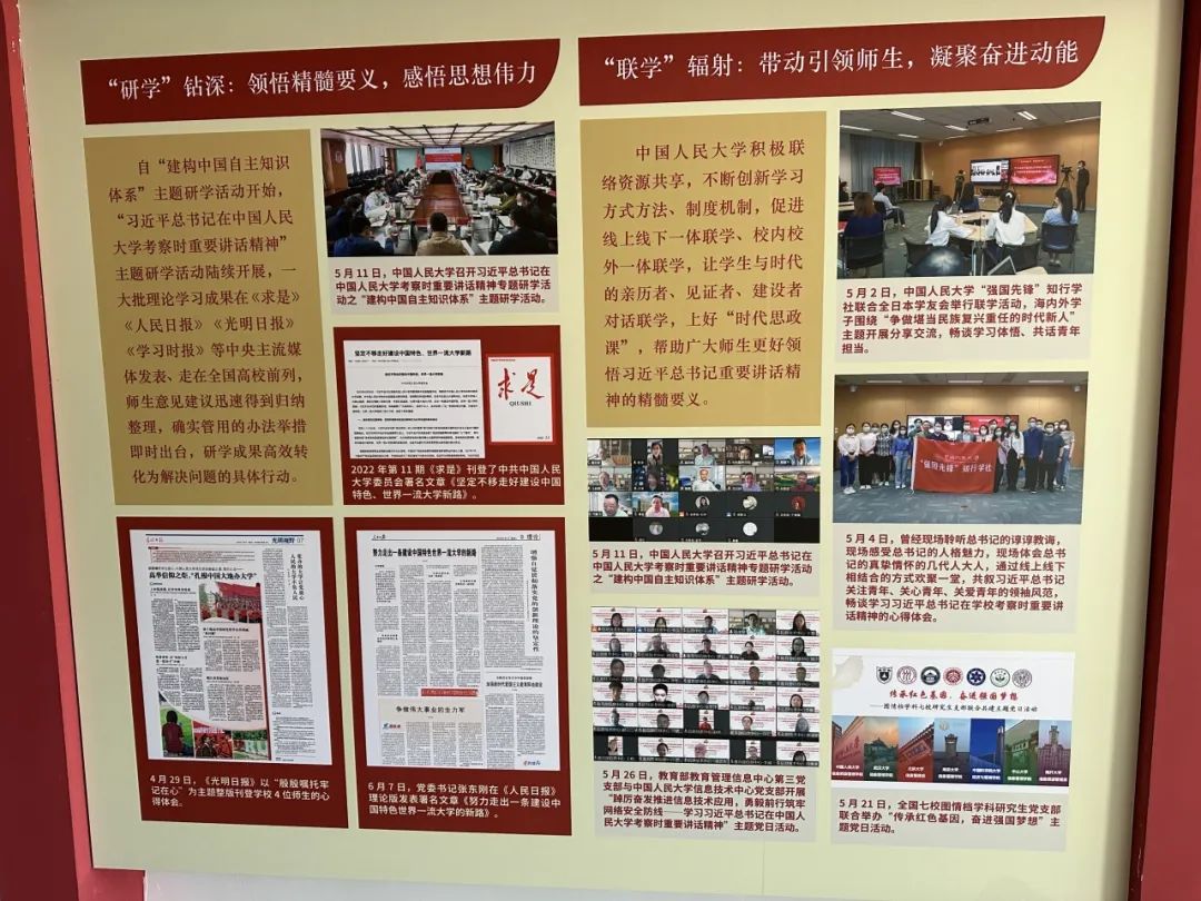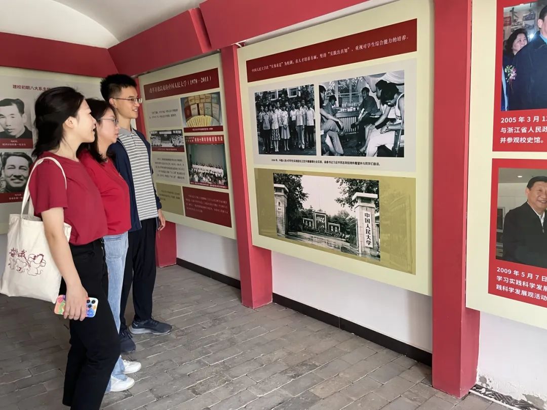 在陕北公学旧址,还展示着每一次习近平总书记考察人大的照片,记录着中国人民大学传承革命精神、贯彻习近平总书记在人大考察调研的重要讲话精神的历史。调研团在留影前了解陕公走向人大的故事。