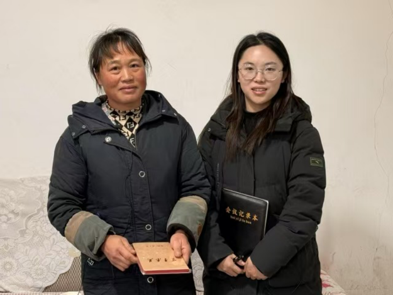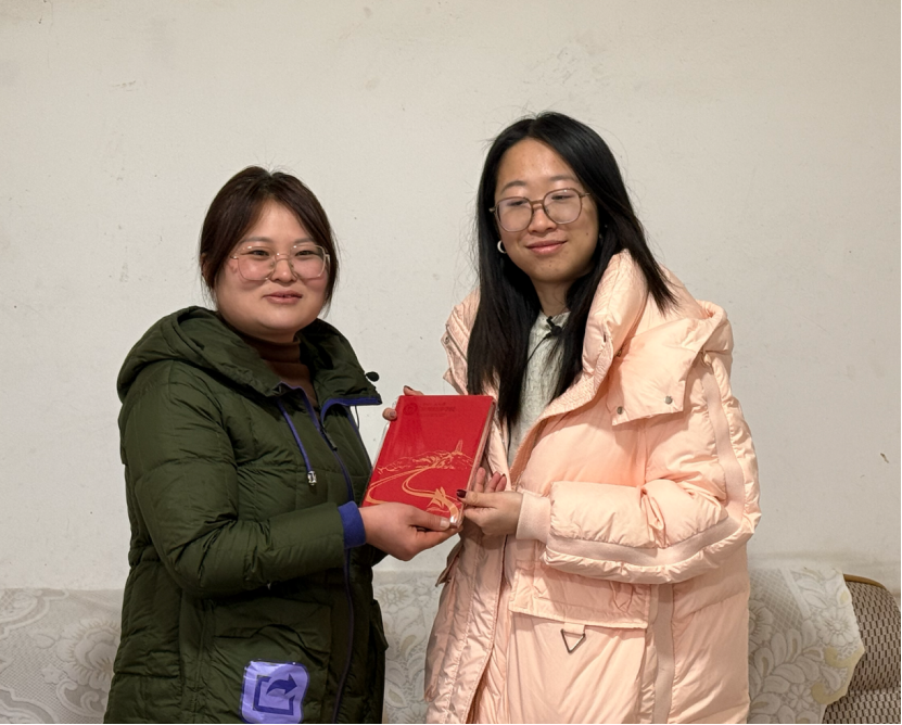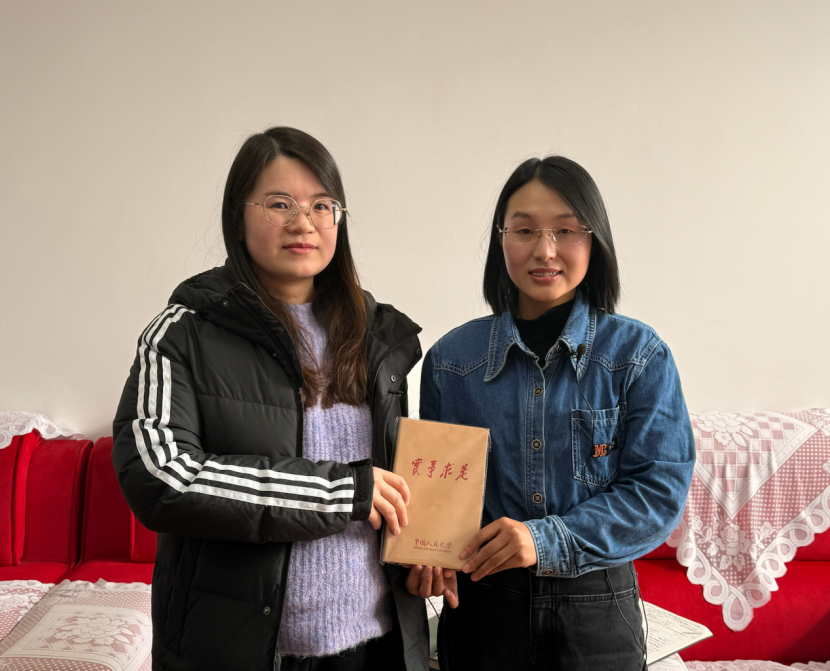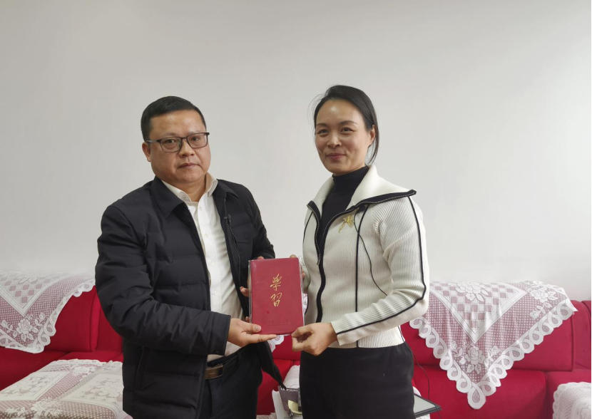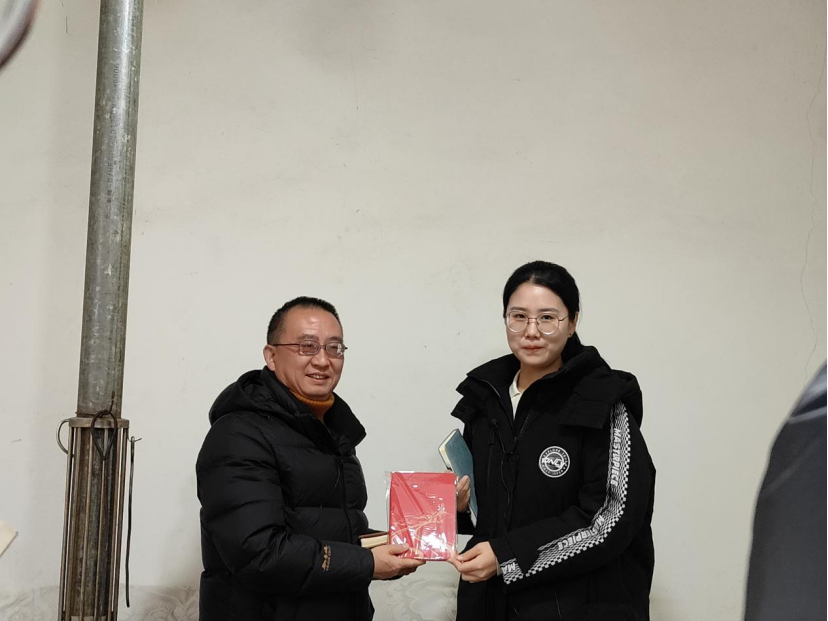 ▲昭通学院马克思主义学院成冬梅老师对彝良县农业农村局副局长陶富娥访谈后赠书留念