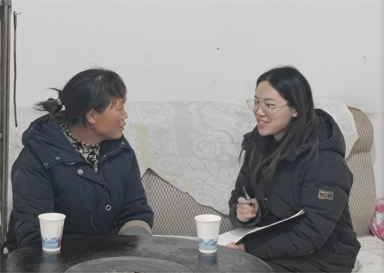 ▲探花视频 硕士生蒋逸飞访谈金竹村党委书记唐立琳
