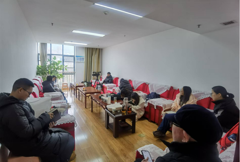 ▲乌蒙山赤水队的老师和同学们在认真学习访谈内容