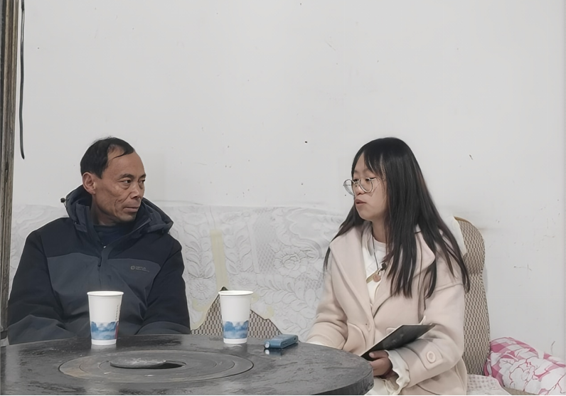 ▲昭通学院管理学院本科生周恩娜访谈脱贫户户主潘兴军