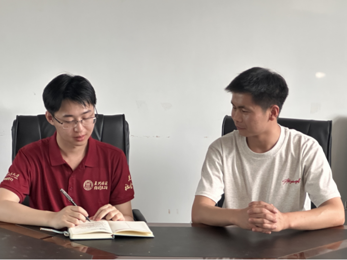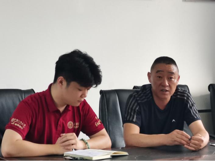 ▲中国人民大学本科生徐瀚臣访谈查汗都斯乡中庄村第一书记郭占祥