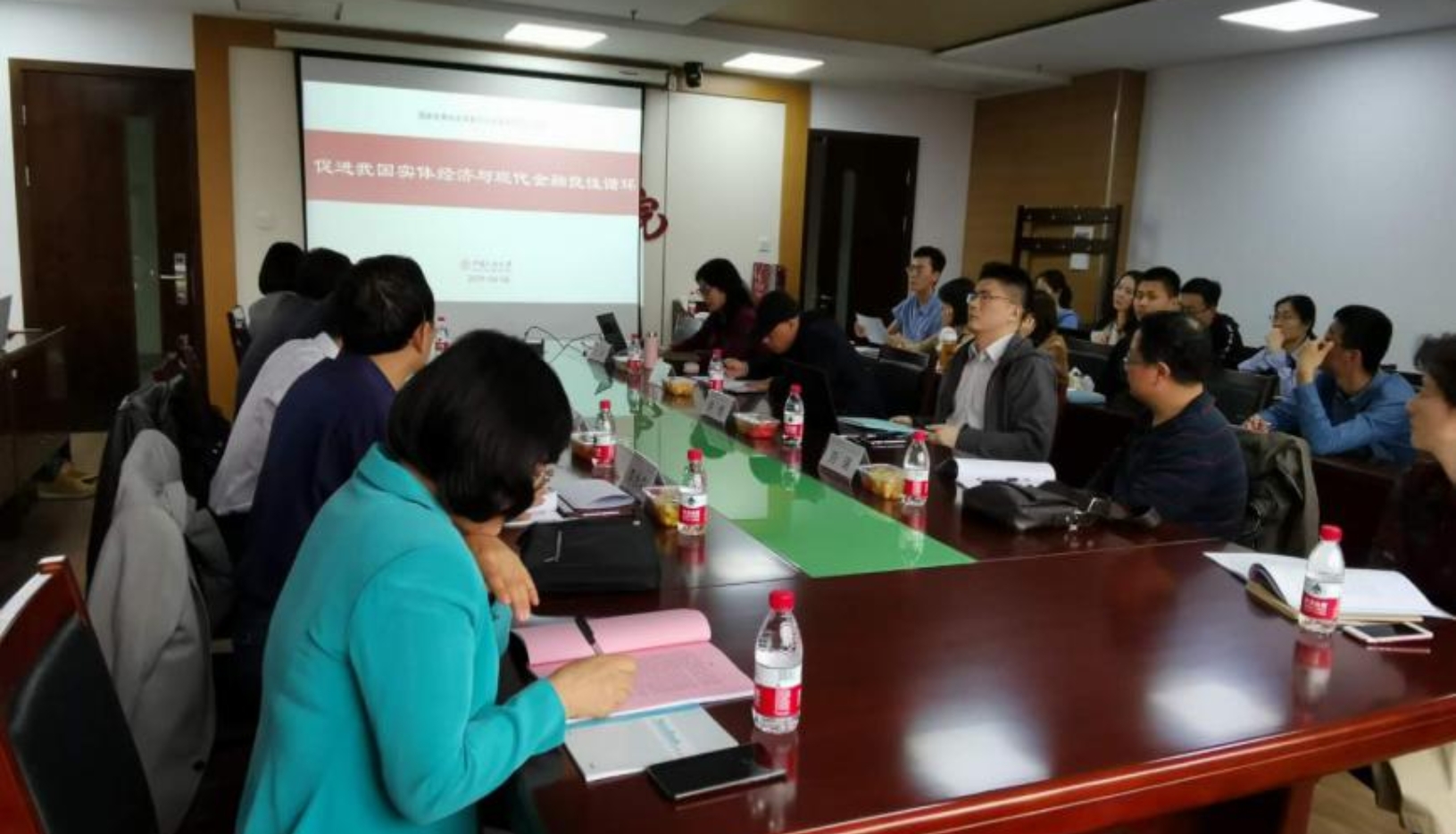2019年4月24日下午14:30,我院主办的“我国实体经济与现代金融循环的困惑与破解”学术研讨会在明德主楼734会议室举行。本次会议由我院副院长黄隽教授主持,国民经济管理系主任方芳教授做主题报告。国家融资担保基金有限责任公司向世文总经理、民生银行供应链金融事业部汪晓帆副总经理、我校财政金融学院戴稳胜教授、中国社会科学院大学经济学院李永森教授、对外经贸大学金融学院丁建臣教授以及校内外多位专家学者与我院学生三十余人参加了此次研讨会。