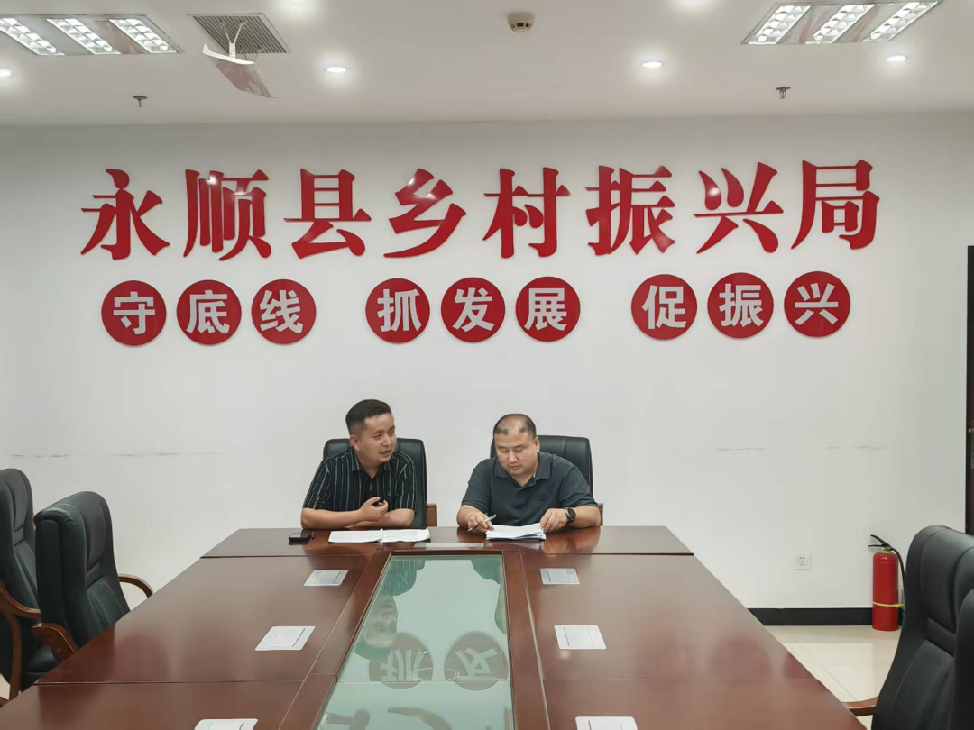 ▲湖南大学经济与贸易学院老师艾克帕尔访谈县农业农村局党组书记、局长马山波