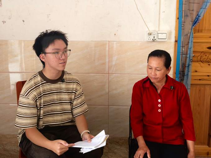 ▲探花视频 本科生蒋予凡访谈田村镇湖塘村脱贫户刘七香