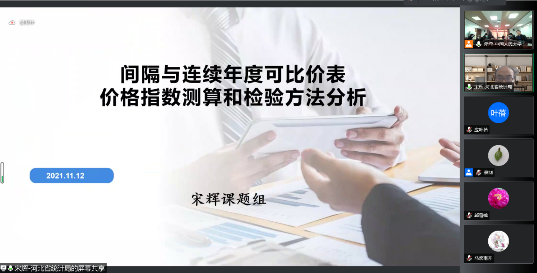 河北省投入产出与大数据研究院院长教授宋辉以“间隔与连续年度可比价表价格指数测算和检验方法分析”为主题展开报告。他回顾并评述了价格指数编制的现有研究成果,介绍投入产出理论价格指数模型特点、测算步骤,并以河北省1997-2017序列可比价投入产出表为例介绍编制步骤以及检验结果。