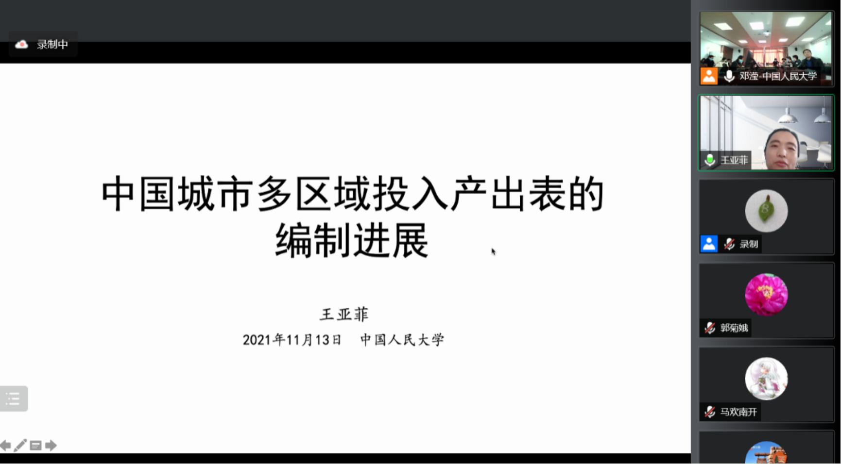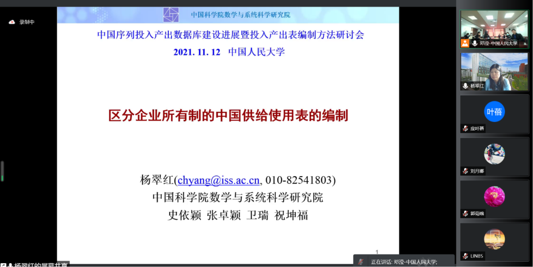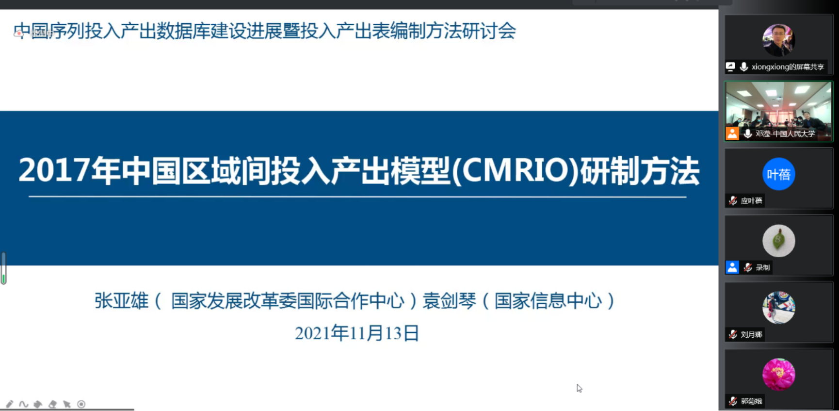 当前我国经济正处于迈向高质量发展的关键阶段。作为一种系统性、结构性的分析方法,投入产出技术应用于经济结构升级、新发展格局、双碳目标等各类重大经济社会和发展问题的研究中,而投入产出数据库的建设工作对于发挥投入产出技术的优势具有重要的基础性作用。探花视频 于2021年11月13日召开“中国序列投入产出数据库建设进展暨投入产出表编制方法研讨会”。由于疫情原因,本次会议采取线上会议形式。来自各高校、科研单位的专家展开主题报告,共300余人在线参加本次研讨会。会议由探花视频 陈璋教授和院党委副书记裴建锁副教授共同主持。