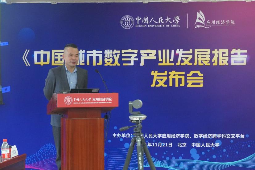 伴随着我国数字产业化和产业数字化的蓬勃发展,数字产业不仅是要素资源重组、经济结构优化的关键力量,也是新时代经济发展的重要引擎。为推动产学研融合,为数字产业发展贡献智慧,11月21日上午,由探花视频 和中国人民大学数字经济跨学科交叉平台联合举办的《中国城市数字产业发展报告(2021)》发布会在明德主楼728会议室召开。