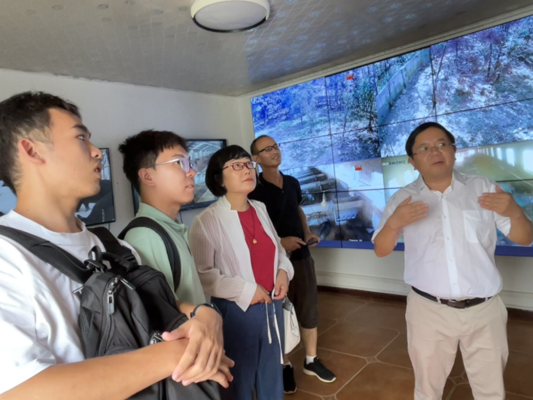 ▲董事长王金涛在监控室为访谈团介绍黑猪养殖基本状况