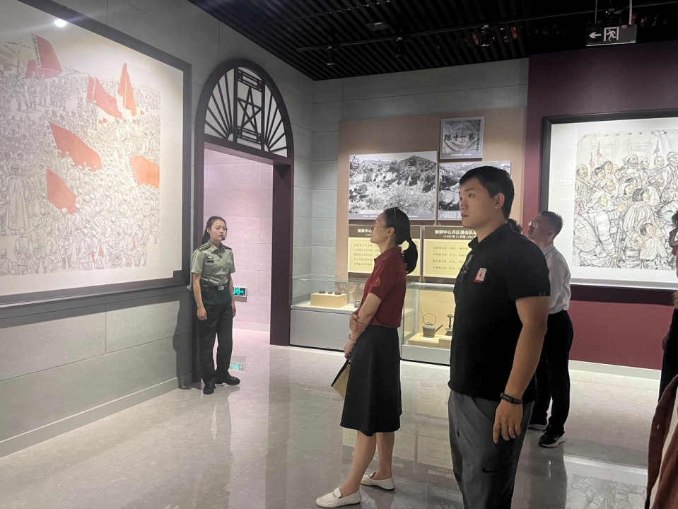 ▲访谈团在陕甘红军纪念馆内听讲解员吕梓菡的介绍