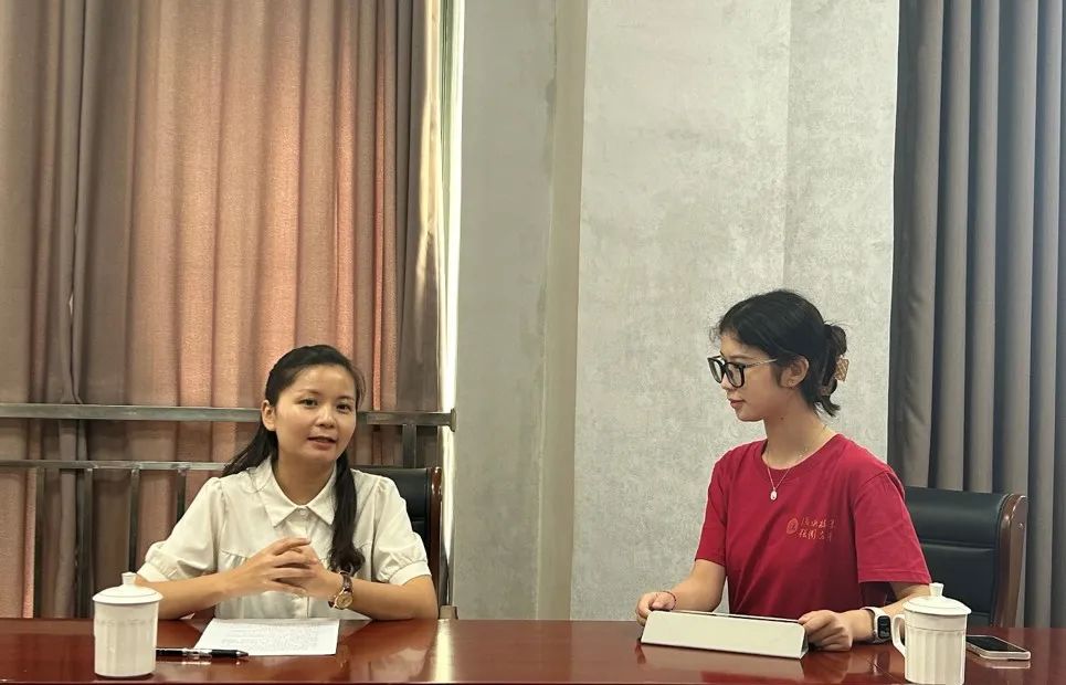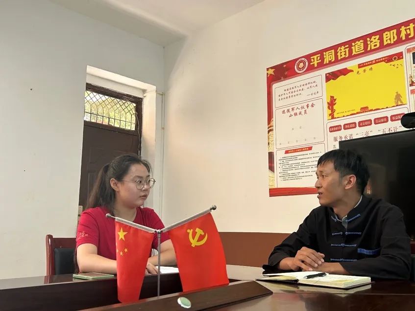 ▲中国人民大学硕士研究生王珊访谈望谟县平洞街道党工委副书记廖基娟