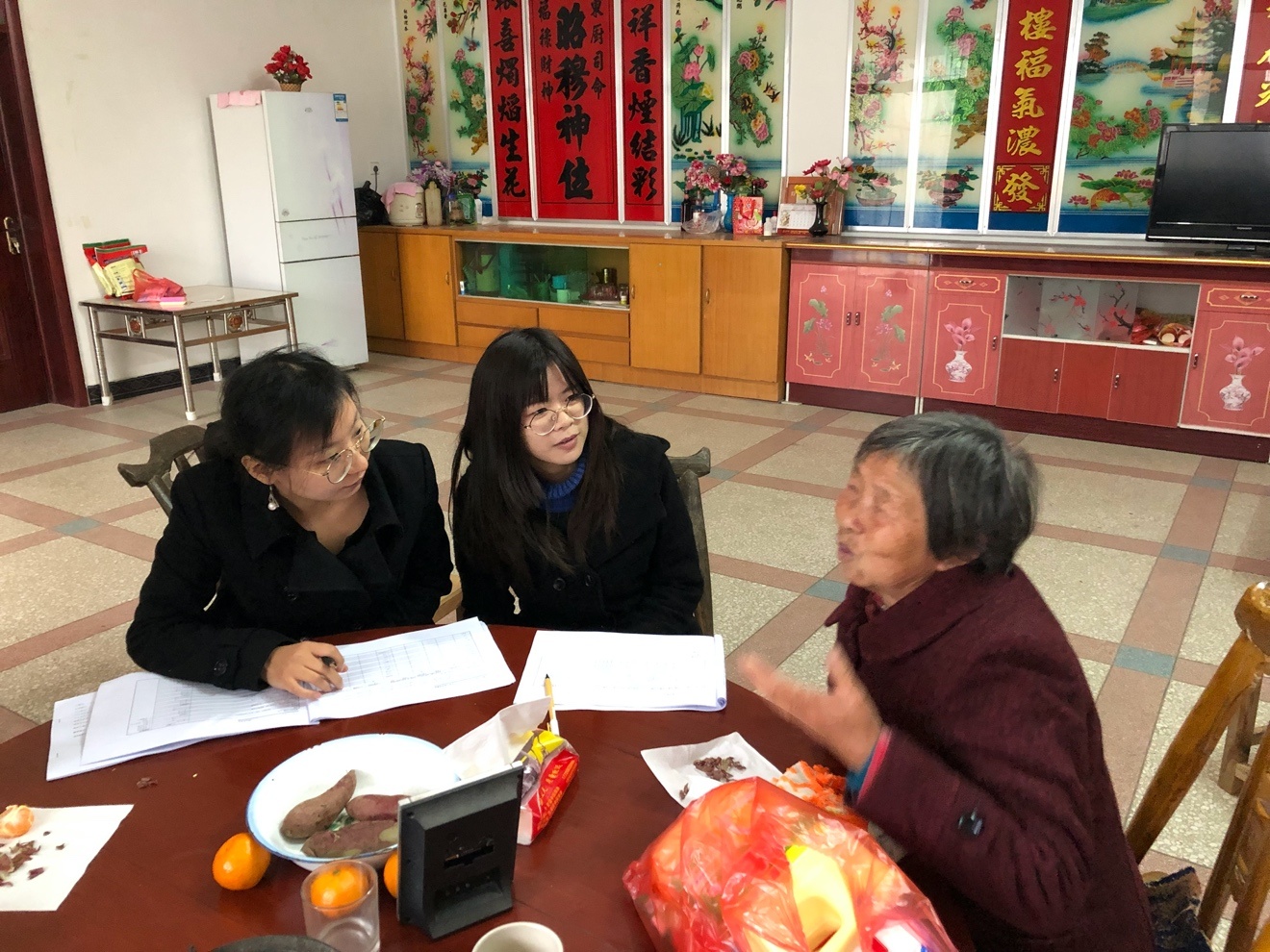 张阳阳(左二)在新县入户调研