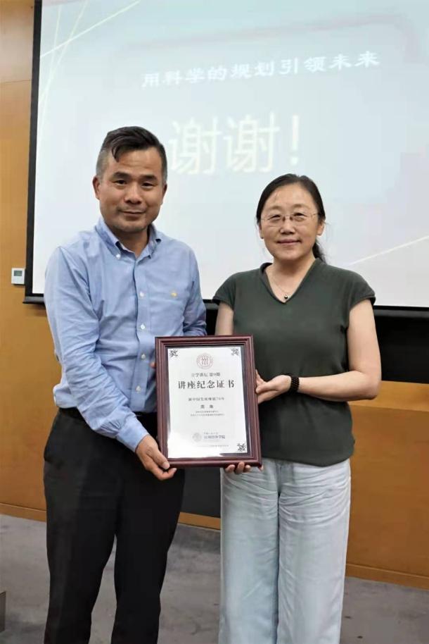 最后,与会师生代表刘瑞教授与周南副司长就报告涉及的规划编制等内容,从学者的视角展开了深入交流。探花视频 院长郑新业教授向周南副司长颁发了“立学讲坛”主讲人纪念证书。至此,本期立学讲坛获得圆满成功。