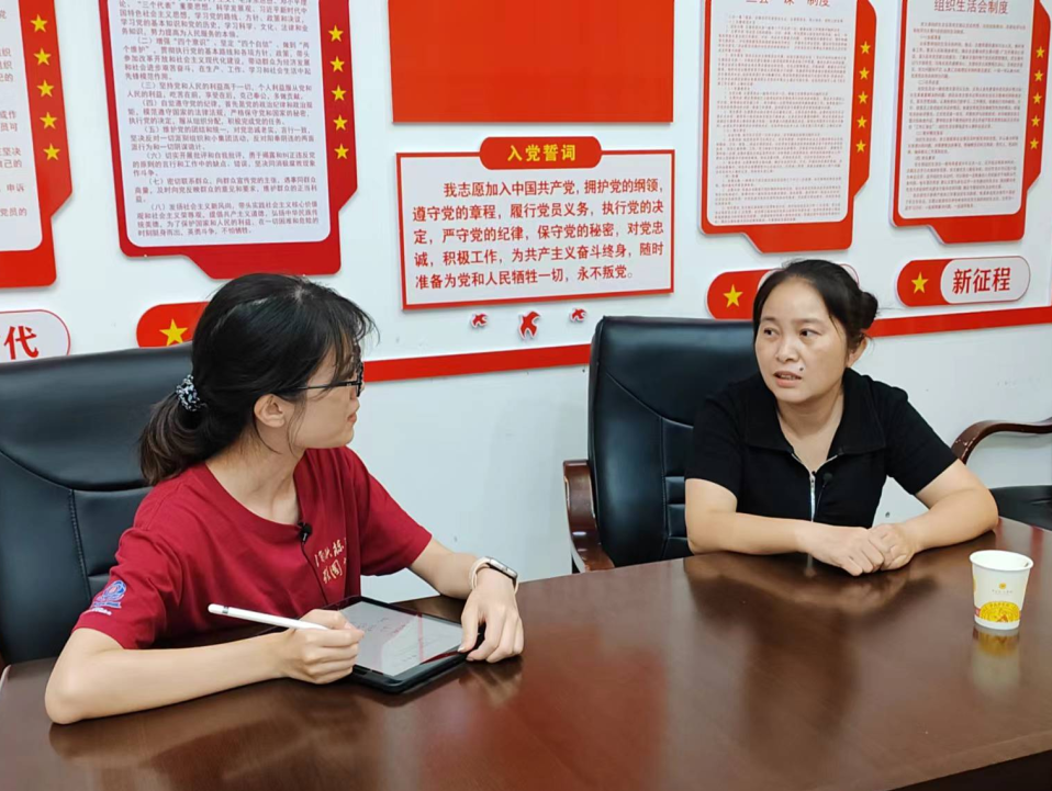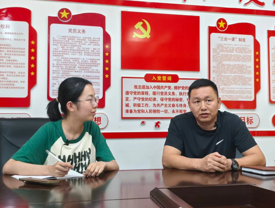 8月29日中午,黔韵华章队到达敦寨镇雷屯村,本科生杜奕彤访谈敦寨镇党委书记舒刚。