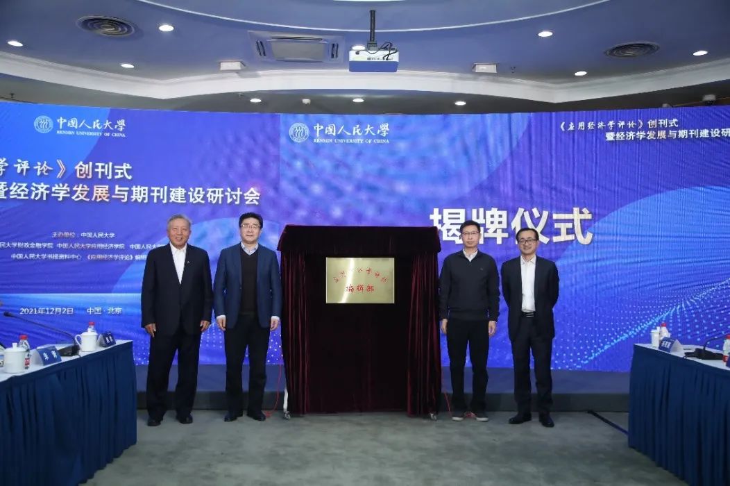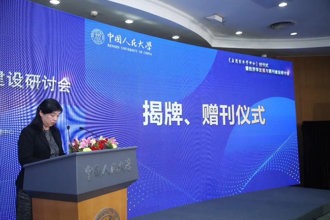 创刊式的揭牌、赠刊环节由中国人民大学财政金融学院院长、全国人大财经委委员、《应用经济学评论》副主编庄毓敏主持,刘伟校长、谭方正副司长、吴晓求主编、刘元春副校长共同担任揭牌嘉宾。