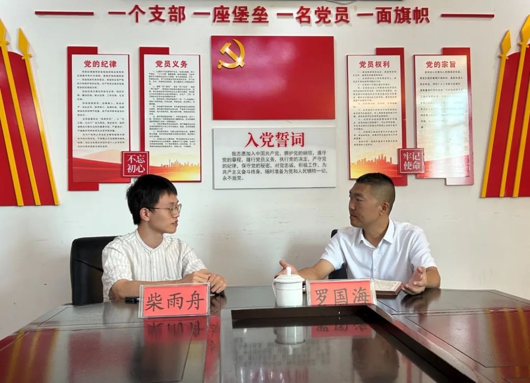 ▲中国人民大学本科生柴雨舟访谈龙山镇镇党委书记罗国海