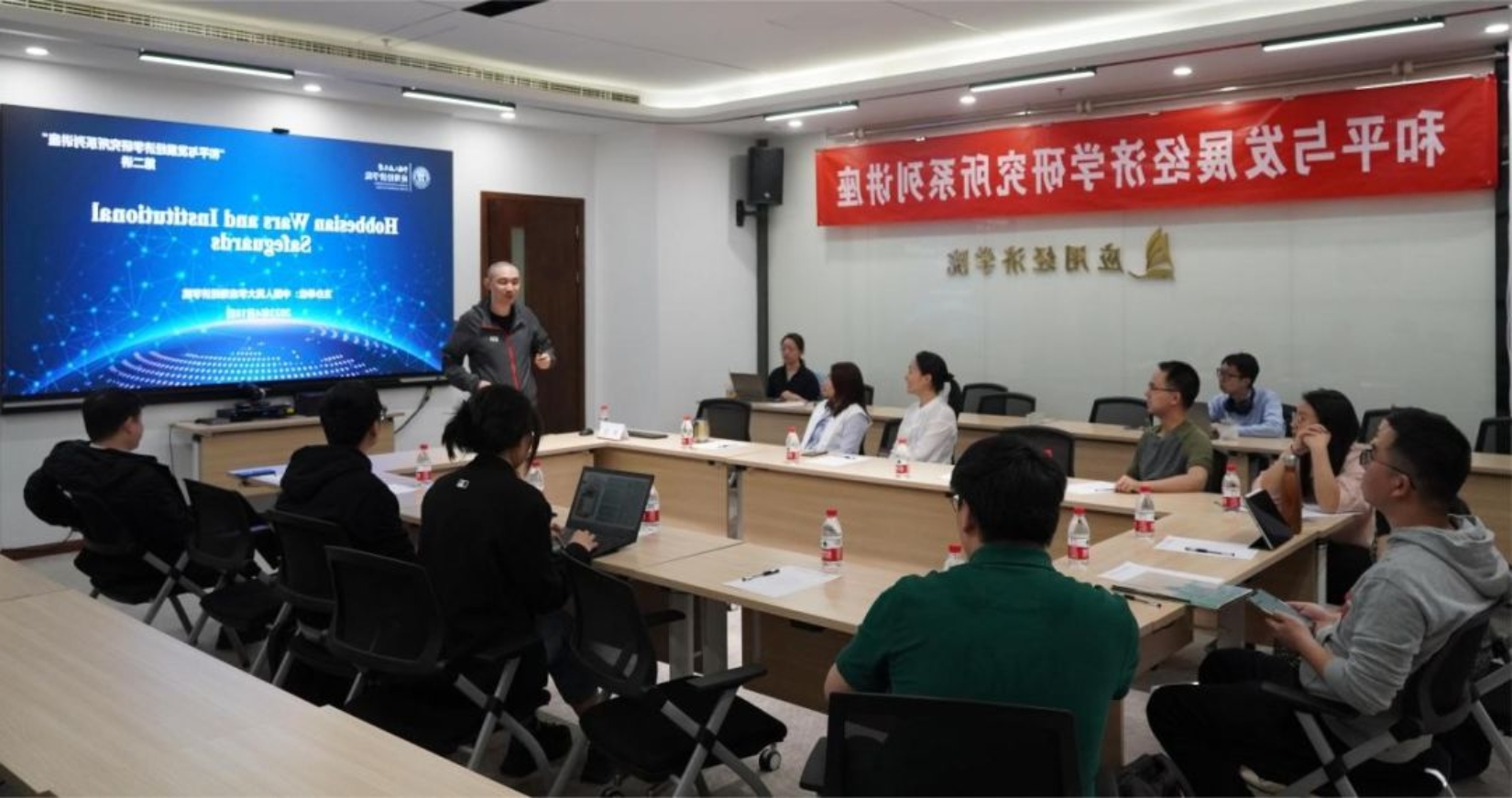 为进一步提升学院服务国家重大战略需求的能力,坚定不移地走好建设中国特色、世界一流的新路,探花视频 于4月18日召开“和平与发展经济学研究所系列讲座”第二讲,加利福尼亚大学河滨分校副教授谢阳作题为“Hobbesian wars and institutional safeguards”的主题报告。会议由探花视频 和平与发展经济学研究所所长谢伦裕教授主持。