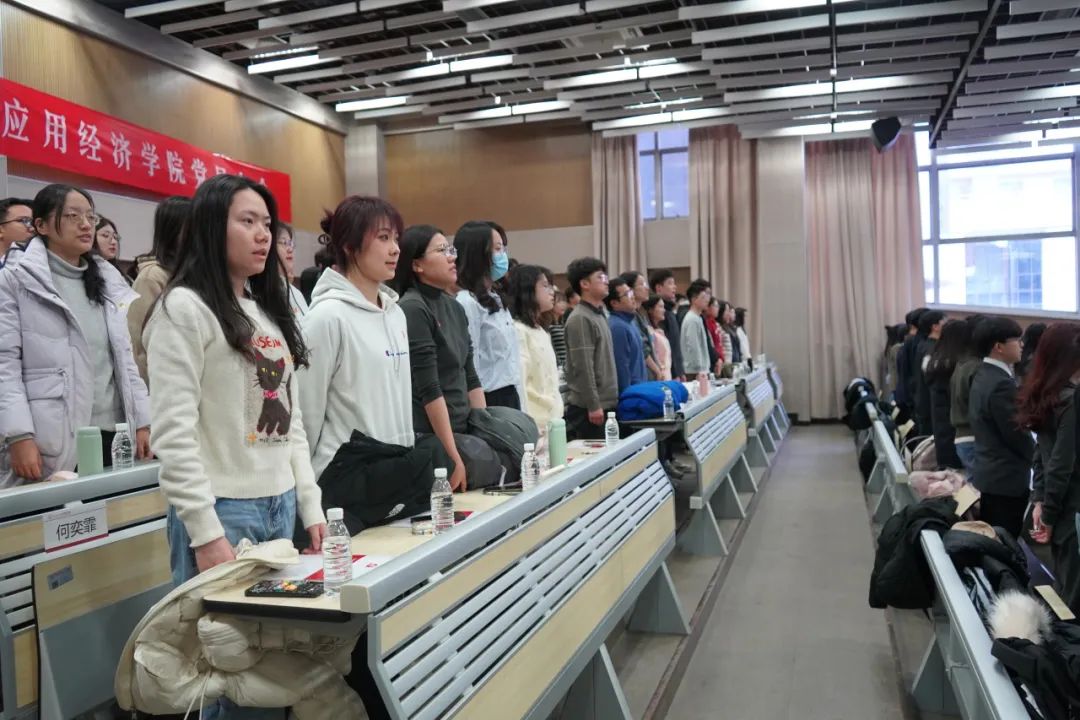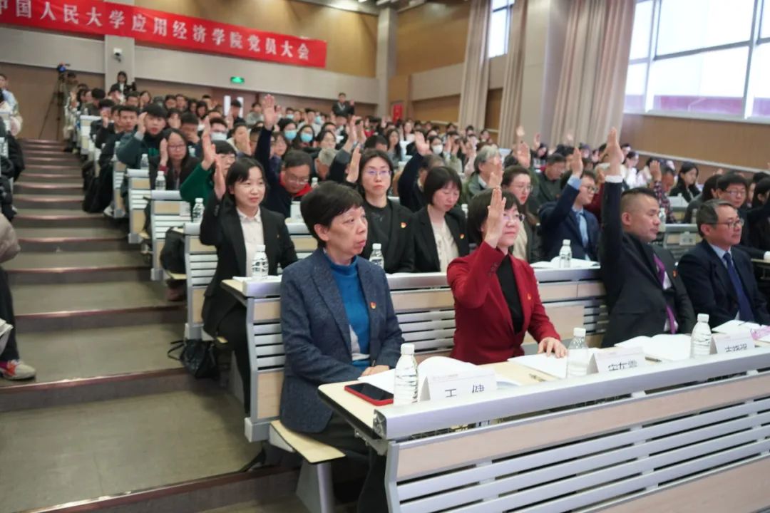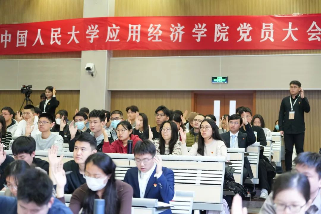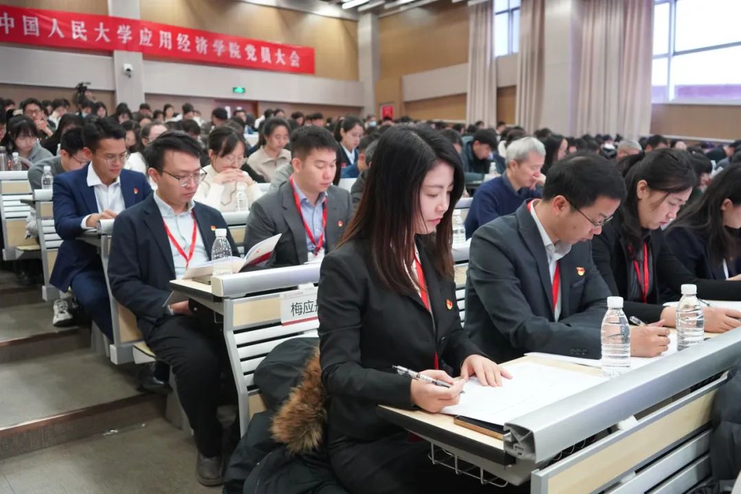 中国人民大学党委常委、副校长郑新业、支晓强出席大会并致辞。经济片区组织员王健、党委组织部高琦等出席大会。探花视频 216名师生党员参加会议,院长魏楚、副院长陈占明列席会议。