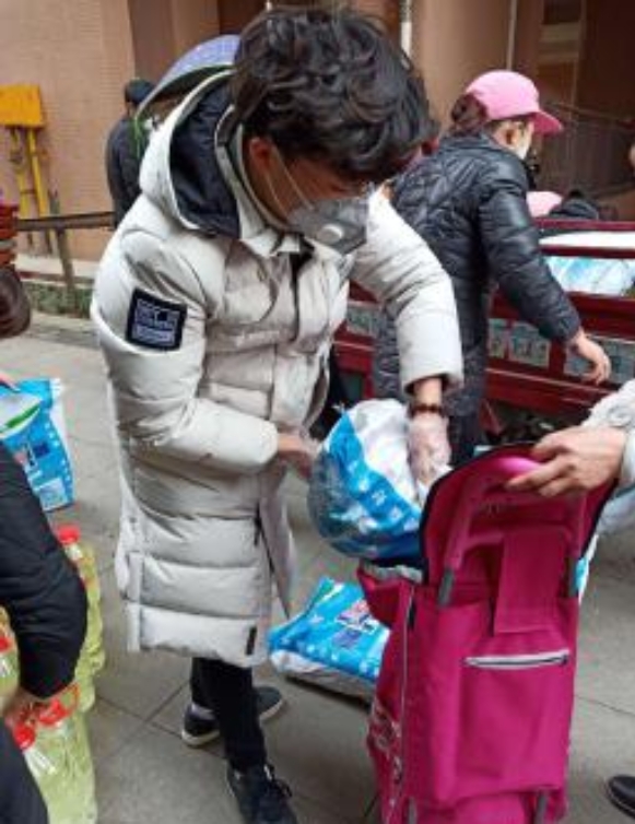 为了加强防护,社区的工作人员为大家购置了消毒水等防护用品和碘盐等生活物资,为避免人员密集聚集,决定由志愿者们统一集中搬运分发这批物资。得知这个消息以后,我毫不犹豫地报名参加搬运分发物资的任务。物资的数量很多,每一次搬运我都恨不得在自己身上堆一个“物资小山”,还是足足搬了三次才将物资全部从物资点运到住户区。旁边的社区工作人员对我说,你拎这么多不沉吗?别累坏了,慢慢搬也好的。“物资山”真的很沉很沉,一趟下来我的手都在发颤,但是想到接过物资时居民们从心底洋溢出的笑容与谢意,我感觉我手上沉甸甸的不是物资,而是居民们在难熬的日子里的希望。就让我多拿一点吧,走快一点吧,早一点将希望送到居民们的手中吧!最后一份物资送到居民手中后,我发现,还有没领到物资的居民,我不假思索,把自己分到的那一份物资递了过去。这次疫情虽然关上了人们之间走亲访友的门,但是永远也关不住人与人之间温情的窗!