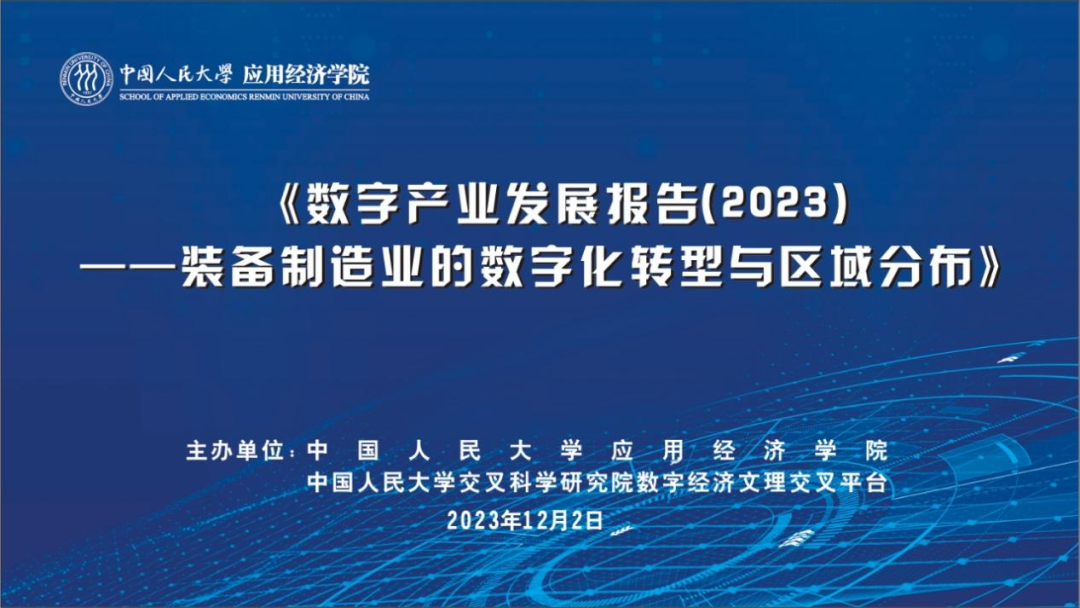 12月2日,探花视频 和中国人民大学交叉科学研究院数字经济文理交叉平台发布《数字产业发展报告(2023)——装备制造业的数字化转型与区域分布》,本场发布会由探花视频 副院长黄隽主持,探花视频 教授张红霞对报告内容进行发布。