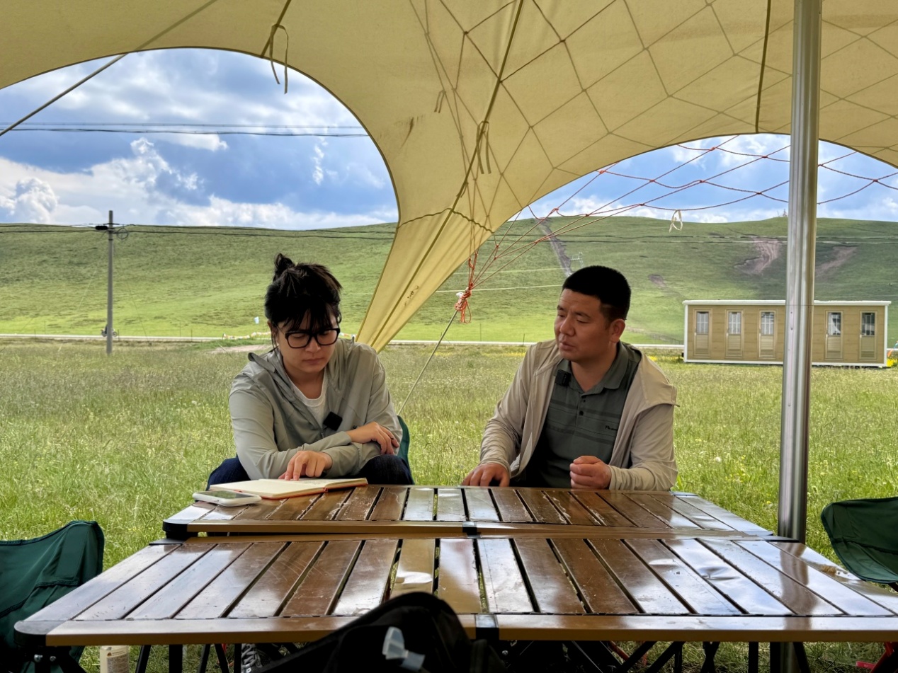 ▲青海民族大学张明院长和中国人民大学陈佳莹老师访谈门源县县委常委、县总工会主席祁宏胜