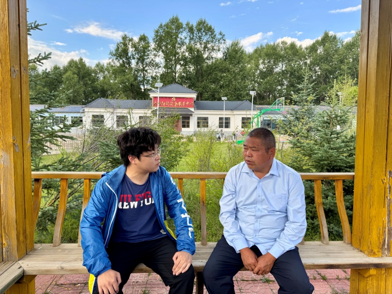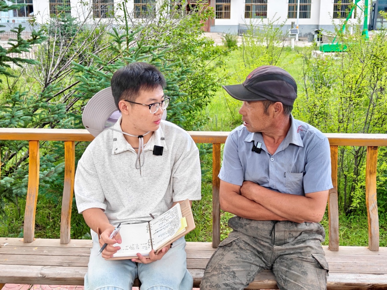 ▲中国人民大学本科生王宇涵访谈阴田乡大沟脑村党支部书记朱发山
