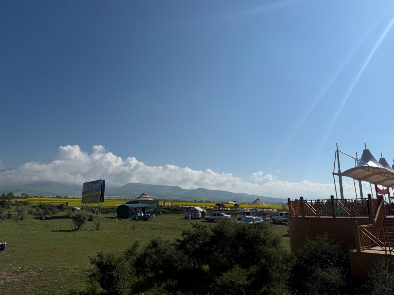 7月21日下午,访谈团来到门源县百里油菜花海景区。百里油菜花海是国家4A级景区,以金黄的油菜花海为特色,每年7-8月吸引大量游客前来观赏,为提升游客体验,当地政府建设了观景台、栈道等配套设施。近年来,景区还增加了太空舱住宿、西餐厅、缆车等漫游设施,弥补了单纯花海观光季节性强的短板。在带动当地增收方面,百里油菜花海景区效果显著。2024年,景区接待游客量持续增长,旅游综合收入达5.52亿元。景区周边的4个村200多农户通过经营家庭宾馆、农家乐等方式,月均纯收入可达1万元左右。此外,景区还吸纳了3000多万元帮扶资金入股,累计实现分红536.2万元,有效带动了当地农民增收。