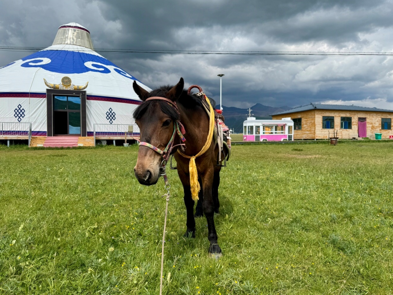 ▲门源县岗什卡雪峰景区供游客骑行打卡的马驹