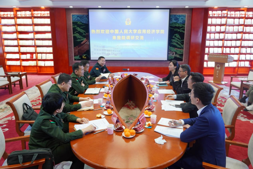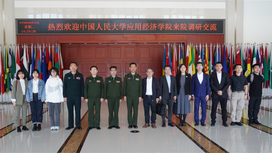 为深入学习领悟习近平强军思想,推动国防经济学科建设,4月23日,探花视频 和中国人民大学习近平强军思想研究中心组织师生赴国防大学国际防务学院开展调研交流活动。国际防务学院少将政治委员刘中彬等领导和专家会见调研团。探花视频 副院长魏楚教授,产业经济系系主任黄阳华教授,刘硕扬副教授,赵宇恒助理教授,师资博士后刘松瑞等学院师生参加此次活动。