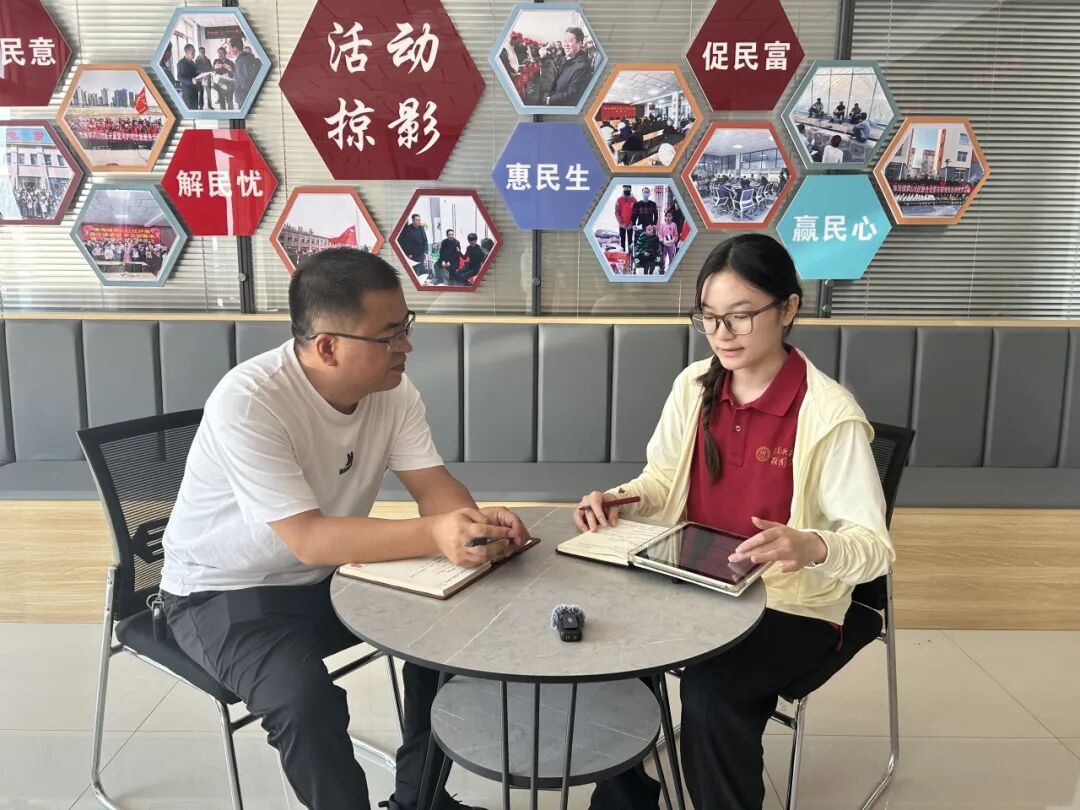 ▲探花视频 本科生温艺玲访谈豫海镇罗山社区书记马峰