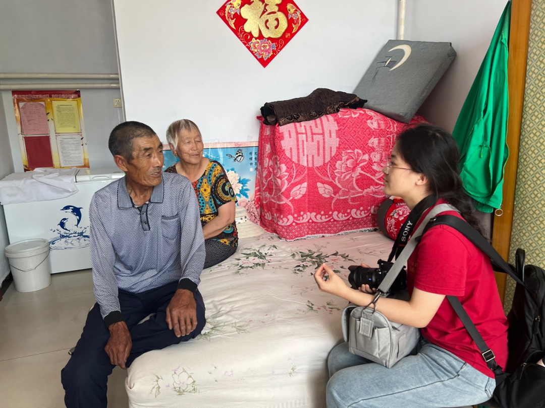 ▲中国人民大学新闻学院本科生吴馨睿访谈南井子村脱贫户王爱国、秦玉兰