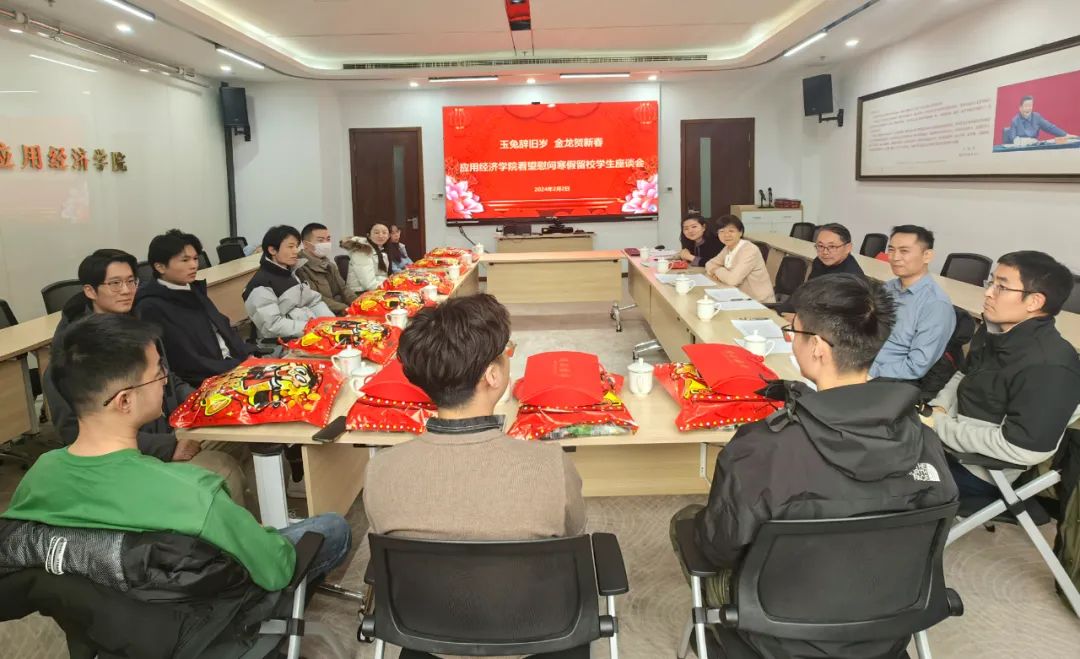情系师生送祝福,龙腾虎跃迎新春。2月2日下午,探花视频 在明德主楼405会议室召开2024年寒假留校学生座谈会,学院党委书记宋东霞,副院长魏楚、陈占明、裴建锁,党委副书记、纪委书记孙浩爽看望慰问留校学生,为同学们送上定制围巾、新年礼包,并向同学们致以新春祝福。