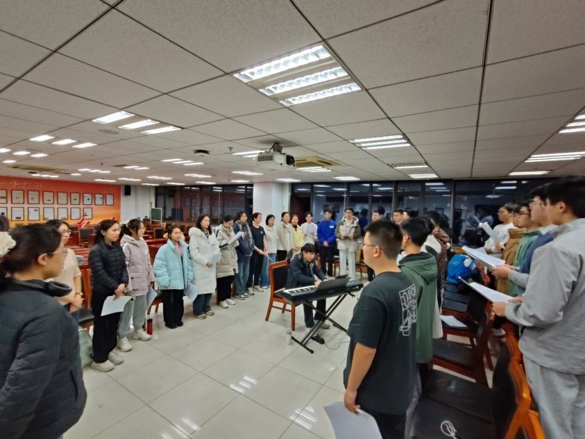 在过去的一个多月里,同学们积极参加排练,以饱满的热情备战演出。从深秋到初冬,展演队员们在每一次训练中用心打磨,精益求精。在王程老师和王振宁师兄的悉心帮助下,同学们逐渐掌握了发声技巧与乐理知识,用歌声演绎团队协作的力量。大家在各个声部长的带领下一步步学习歌曲,也增进了彼此的感情。