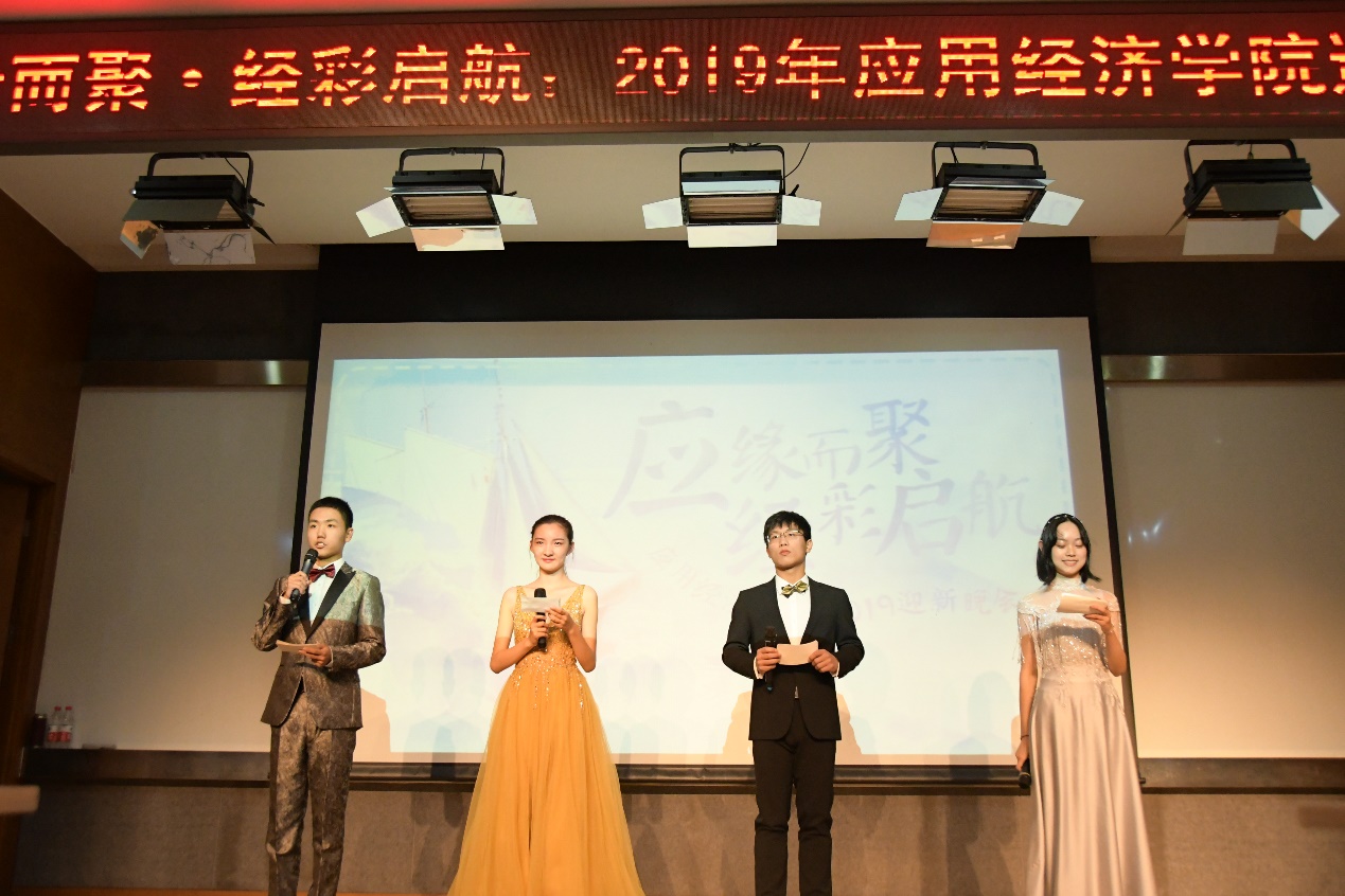 举办“应缘而聚,经彩启航”新生晚会。大家在才艺表演与游戏环节中声笑语不断,全场其乐融融,“应经一家人”的认识逐渐在每一个人的脑海中深化。