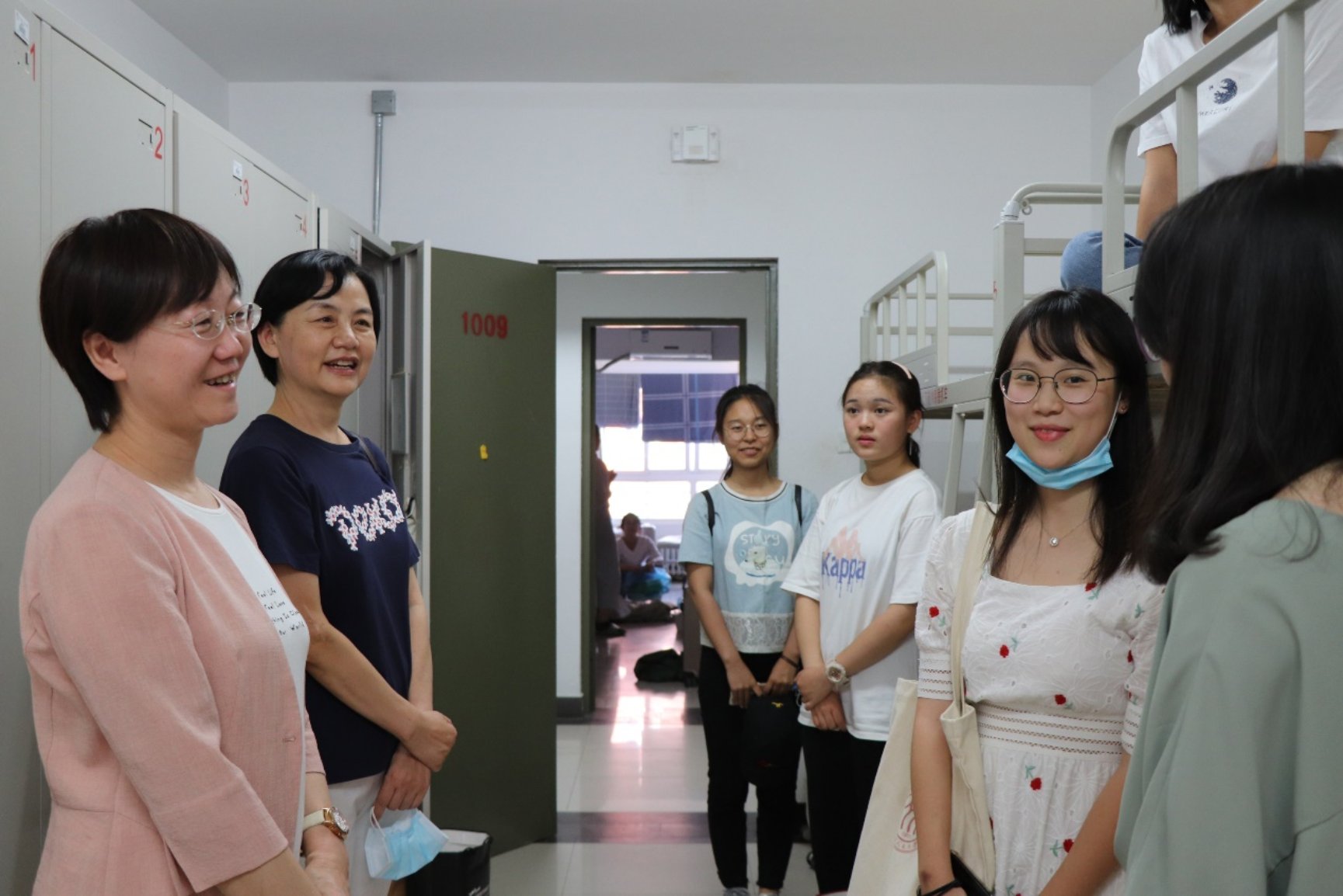 下午,党委书记宋东霞,副院长黄隽,副院长陈占明分别前往寝室看望慰问新生。宋东霞老师和黄隽老师认真询问了同学们生活的各个方面,耐心叮嘱同学们要保护好自己,开开心心报到、安安全全生活。陈占明老师细致地关心同学们到校后的心理状态,提醒同学们遇到困难与问题要及时与班主任和学院联系。